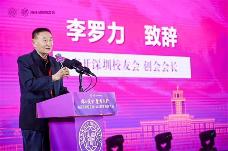 李罗力代表主席团致辞。他表示,回望南开深圳校友会三十载征程,从不足3000人发展到近3万人,深圳校友会以“快乐、友爱、合作、交流”的价值观为核心,依托40多个俱乐部联盟实现“周周有活动、月月有精彩、年年有盛事”,近3000家校友企业为区域贡献30万个就业岗位,同时在创业就业、生活帮扶中传递温暖。
