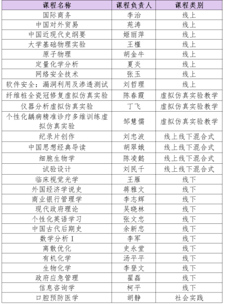 在此前两批评选中,南开已有59门课程荣获国家级认定,涵盖文、理、工、医等多学科领域,形成了质量优良、类型丰富、特色鲜明的一流本科课程体系。