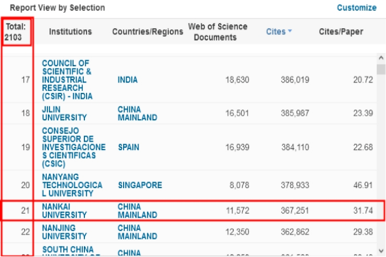 化学学科首次进入ESI全球前万分之一
