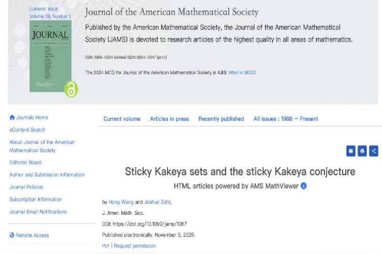 南开教授在国际顶尖数学刊物《美国数学会杂志》发文