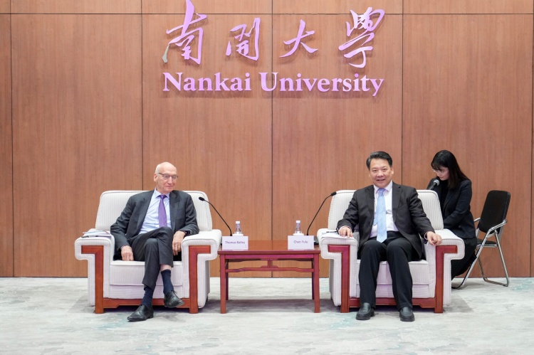 托马斯·贝利对南开大学的热情接待表示感谢,并回顾了双方的历史渊源。他表示,南开大学创校校长张伯苓先生是哥伦比亚大学教育学院的杰出校友代表,约翰·杜威、保罗·孟禄、克伯屈等学院著名教育家亦曾多次访华,这条跨越百年的学术纽带历久弥新。自1900年起便有中国学生赴学院求学,学成后为中外教育事业发展作出了重要贡献,今天的中国学子也持续为全球教育领域注入活力。哥伦比亚大学教育学院高度重视与南开大学的合作关系,并愿成为支持中国学生成长与教育事业发展的重要枢纽。期待双方未来在教育教学、科学研究、人才培养与师资发展等领域深化合作,携手推动全球教育事业取得更大发展。