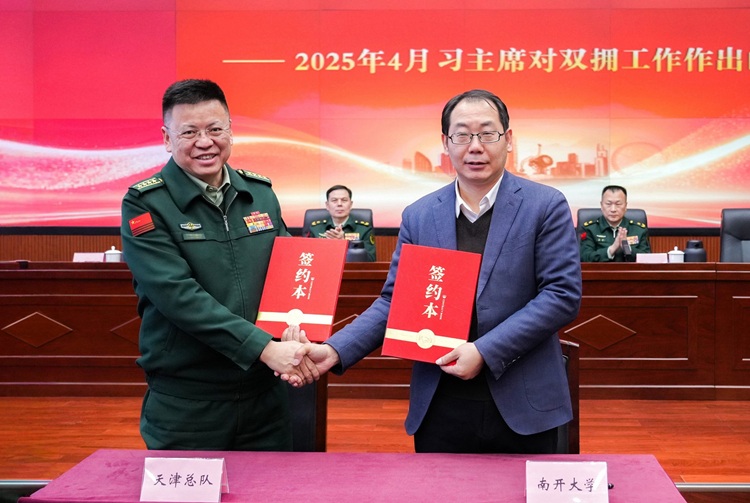 武警天津总队主要领导在致辞中指出,此次签约共建既是深入贯彻习近平主席关于“双拥”工作系列重要指示的时代回应,更是巩固发展军政军民团结和传承发扬南开校训文脉的生动实践。双方精神高度契合、优势深度互嵌、发展愿景同频,倡议建立共学创新理论、共育时代英才、共建先进文化、共享发展成果的“四共”机制,让南开大学与天津总队共建之花结出累累硕果,相信双方必将以此次签约仪式为新的起点,书写军民高水平共建、军地高质量发展的崭新篇章。