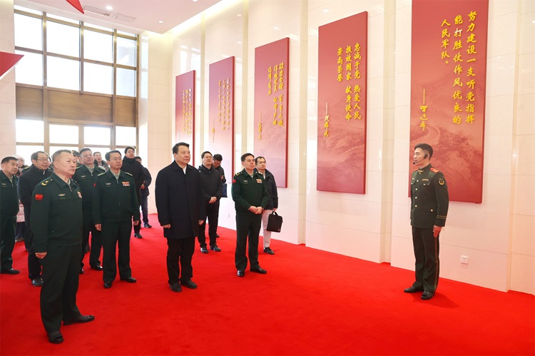 当天,在武警天津总队主要领导的陪同下,陈雨露一行参观了武警天津总队史馆等地,详细了解总队的历史沿革、发展历程和英模风采。