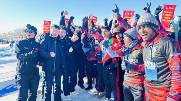 南开大学龙舟队凭借2025-2026冰上龙舟超级联赛总积分冠军的成绩,与东道主内蒙古辽阔草原锡林郭勒龙舟队携手代表中国出战。作为唯一在校学生队伍,队员们联赛一个月以来兼顾学业与训练,以联赛总冠军的实力为此次征战奠定基础,彰显南开学子的体育担当。锡林湖畔寒风凛冽,为迎战国际强手,队员们精益求精,针对四大比赛项目,反复打磨入冰力度、调整节奏配合、提高舵手操控技巧。