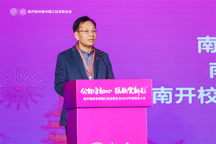 吕滋立代表兄弟校友会致辞。吕滋立表示,从南海之滨到长江之畔,支撑校友们跨越千里相聚的,是张伯苓老校长“爱国爱群、服务社会”的精神指引。扬泰镇校友会深耕江淮大地,坚守服务母校的根脉,以助学捐资等举措践行公能精神,让南开校训在三城大地生根开花、熠熠生辉。