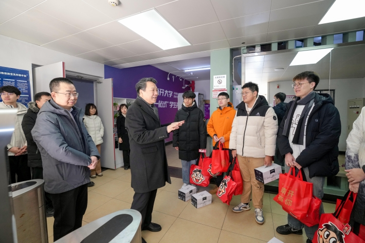 在学生宿舍,杨庆山、陈雨露与留校学生亲切交流,询问同学们的家乡是哪里、假期学习安排和留校生活等情况,为大家送上节日慰问品,叮嘱同学们要合理规划假期时间,兼顾学习和生活,与家人保持联系,让家人安心放心,并表示学校将一如既往做好服务保障工作,为留校学生的学习和生活营造温馨安心的环境。同学们纷纷表示,留校期间学习生活安排充实、保障周到,会在南开园度过一个温暖而有意义的春节,让家人和学校放心。