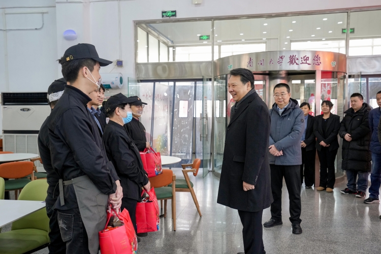 在校园各处,杨庆山、陈雨露走访慰问假期坚守岗位的工作人员,向大家致以新春祝福,对他们在假期中恪尽职守、为保障校园安全运行和师生生活所作出的辛勤付出表示衷心感谢,嘱托他们要始终把安全放在首位,服务要悉心周到,并为他们送上慰问品。在岗职工感谢学校的关心关怀,表示一定认真履职尽责,全力做好各项服务保障工作,确保校园平稳有序运行。