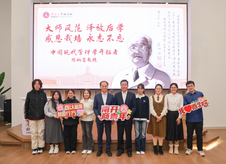 杨庆山指出,陈炳富先生是中国管理学重要开拓者之一,他倡导的“南开—约克模式”堪称中国管理学教育史上的创新经典。陈炳富先生在学术上造诣颇丰,在人格上独立坚定,在教学上严谨踏实,为国家培养了大批优秀管理学人才,也为南开留下了宝贵的精神财富。长期以来,张文中校友始终心怀南开、感念师恩,以不同方式鼎力支持母校发展,捐资设立的陈炳富奖教金、奖学金极大助力了南开商科拔尖创新人才培养。商学院师生要大力传承弘扬陈炳富等老一辈南开先生的家国情怀、治学精神,以张文中校友为榜样,奋发进取、勇立潮头、开拓创新,努力为学院学科发展、世界一流大学建设贡献商科力量。期待南开大学与物美集团等广大校友企业进一步密切联动,深化校企协同育人机制,推动南开教育与产业前沿深度融合,共同培育兼具全球视野、家国情怀与实践能力的复合型创新人才。
