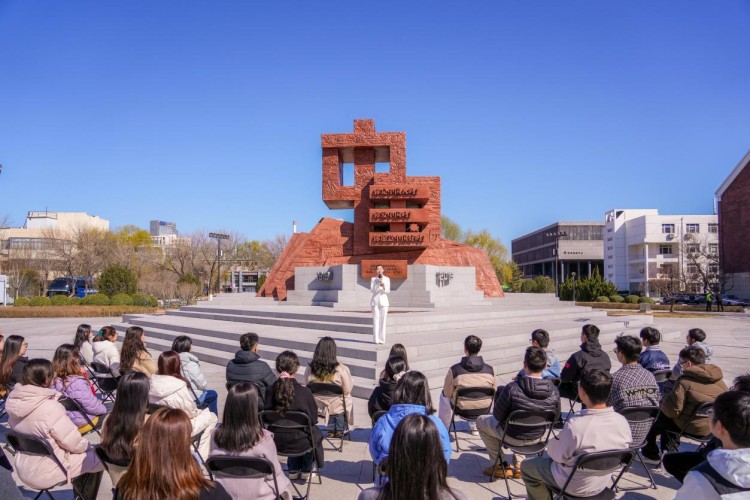 在习近平总书记来校视察以及在学校思想政治理论课教师座谈会上发表重要讲话七周年、南开创校校长张伯苓诞辰150周年之际,南开大学“爱国三问”碑及文化广场正式落成启用。3月18日上午,一堂以“历史之问、时代之问、未来之问”为主题的沉浸式思政课在这里燃情开讲。没有教室、课桌和黑板,这方以紫铜铸造、高达10米的“爱国三问”碑庄严矗立于“讲台”中央,“中国”二字鼎立乾坤,张伯苓老校长振聋发聩的“爱国三问”凝固于碑身,无声地诉说着神州板荡、民族危亡之际,那警醒世人的救国呐喊。50余名南开师生共同回顾先辈们救国、兴国、强国的奋斗历程,重温习近平总书记的殷殷嘱托,在跨越时空的对话中叩问初心、汲取力量。