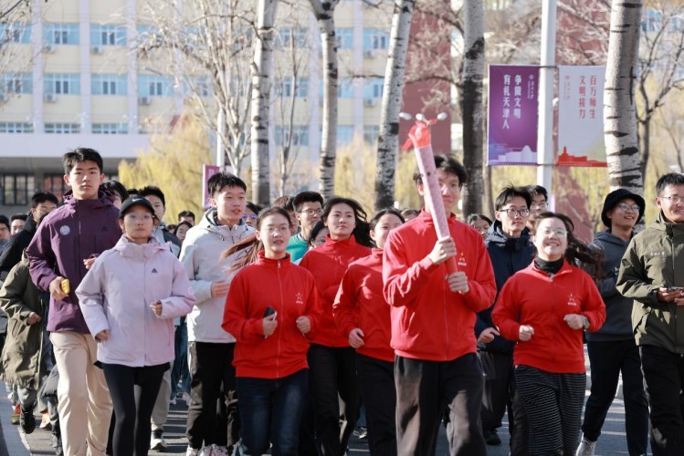 “一二·九”爱国运动主题校园跑活动,师生奔跑传递火炬