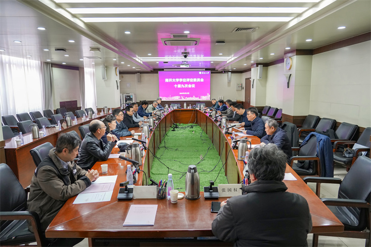 南开新闻网讯(通讯员 李绪 摄影 宗琪琪)3月19日,南开大学学位评定委员会十届九次会议在八里台校区服务楼召开。会议由校学位评定委员会副主席朱守非主持。学位评定委员会各分组召集人、委员出席会议。