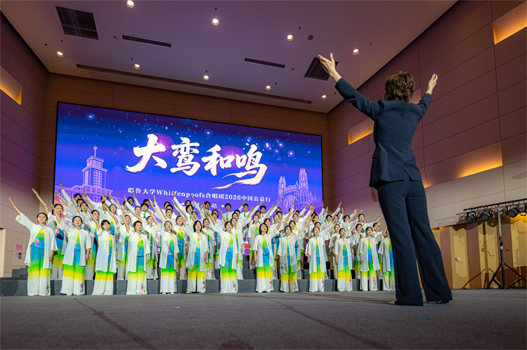 在最后的返场环节,两支高水平合唱团并肩而立,中美青年共同唱响《让世界充满爱》。跨越山海的音符在此刻汇成最和谐的旋律,触动着每一位观众的心弦。