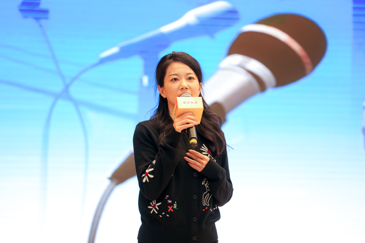西藏日报社记者杨小娟在《愿做高原上的一朵格桑花》中,讲述了自己扎根雪域高原,以笔为犁、以爱为种,记录西藏发展变迁的职业信念。她也向在场学子发出邀约,期待更多南开学子投身建设美丽西藏的伟大事业。