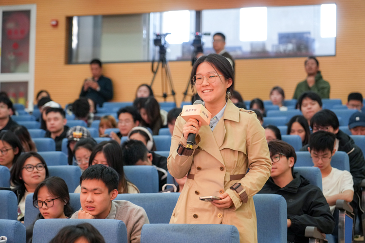 报告结束后,巡讲团成员集体上台与现场师生交流互动。学生们就主流媒体深度报道的独特价值、数智时代记者人文共情能力的不可替代性、国际传播中如何讲好中国故事等前沿话题踊跃提问。成员们从新闻理想的坚守、专业能力的锤炼到主流价值的传递等角度进行了细致解答,并分享了在行业变革浪潮中保持定力、锐意创新的切身感悟。巡讲团成员纷纷表示,南开师生的提问既有直面技术冲击的敏锐思考,又有扎根家国大地的深沉情怀,充分彰显了学校“知中国,服务中国”的办学宗旨与育人成效。