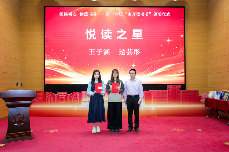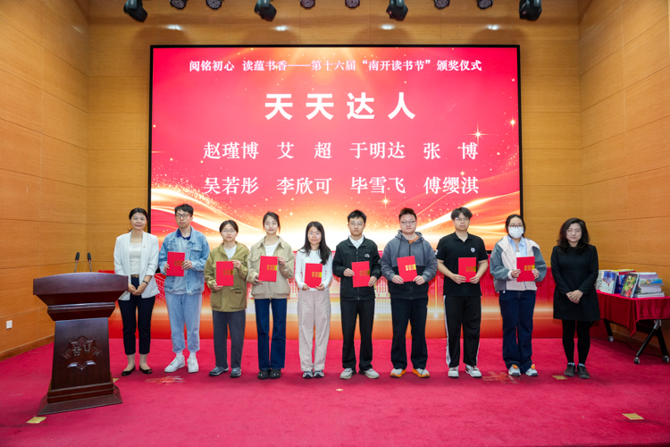 与会嘉宾为年度“悦读之星”、南开—庄浪共读活动“阅读标兵”、“读书达人”、“天天达人”、“优秀主题图书策展人”、“优秀学生馆员”、“优秀志愿者”、“学生社团贡献奖”获奖者颁奖。