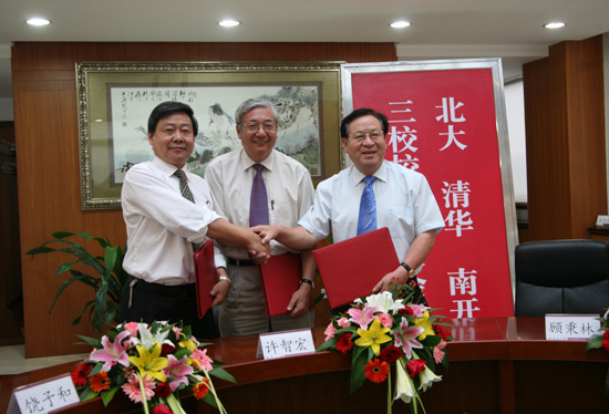 9月13日,北大校长许智宏院士、清华校长顾秉林院士、南开校长饶子和院士在南开大学举行了首次圆桌会议。三位校长签署了有关合作备忘录,约定今后每年定期举行“北大——清华——南开三校校长圆桌会议”。