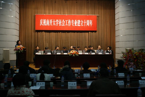 社科处处长高永久在致辞中祝贺社会工作专业建立十周年。他说,保障社会的安定有序,需要专业的社会工作者。可喜的是,社会工作专业已经得到了国家的重视,社会工作的专业人才也已经被纳入国家专业人才的范畴。他祝愿南开的社会工作专业能够又好又快地发展。