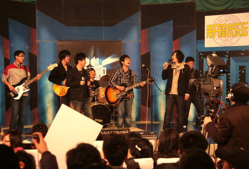 水木年华与南开学生的校园乐队合作演唱《在他乡》 |