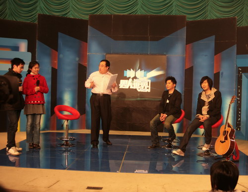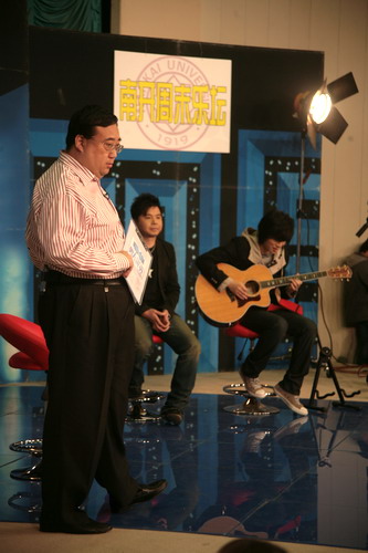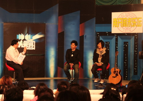 南开新闻网讯(记者 高杨 摄影报道)3月22日,内地人气组合水木年华来到我校,参加“南开周末乐坛”特别节目,录制天津电视台“男人世界”栏目,3个小时的录制过程中,场内欢笑声不断,主持人那威和水木年华成员卢庚戌、缪杰带给观众师生快乐之余,更有自己的人生感悟,卢庚戌坦言,作为男人,应该时刻怀有梦想,更要有责任感。