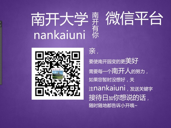 “小开”是南开大学官方微信的昵称,目前拥有校内外粉丝8000余名,作为全国较早利用官方微信这一新媒体平台进行校园信息咨询交流的高校。学校从“小开”运营之初就在考虑如何利用其更好的贴近师生学习工作生活。