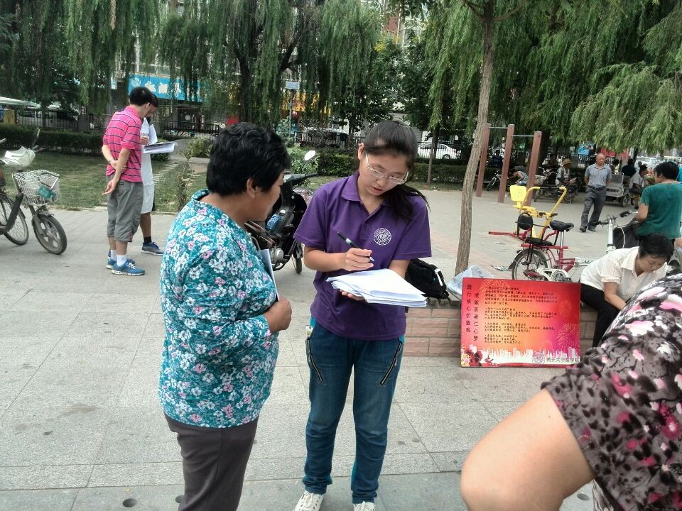 实践团成员来到易县的文化广场,为当地居民免费测量血压,发放老年健康手册,并进行问卷调查。现场人头攒动,络绎不绝,针对当地许多老年人血压偏高的情况,实践队成员细致地为当地居民讲了高血压的预防与注意事项,并建议大家注意饮食,合理搭配营养,多吃蔬菜水果,并定期监测血压,发现问题尽早就医。