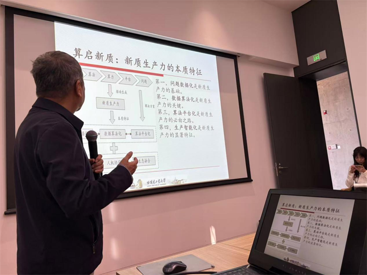 米加宁报告题目为“新质生产力助力智慧城市建设”。他结合2025年8月国务院《人工智能+行动方案意见》,解读了中国AI发展“三步走”战略,指出新质生产力通过融合算法、算力、数据,正推动生产函数从“道格拉斯代数式”向“指数级”转变,将重塑柔性制造、智慧教育等城市生产生活场景。