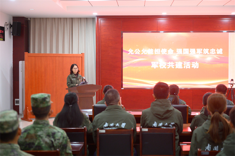 南开大学材料科学与工程学院党委书记邢丽芳表示,要牢记习近平总书记视察南开大学时的殷殷嘱托,深入贯彻习近平总书记给南开大学8名新入伍大学生回信精神,秉承南开大学爱国主义光荣传统,不断推动军校共建走深走实,凝聚强国强军的奋进力量。