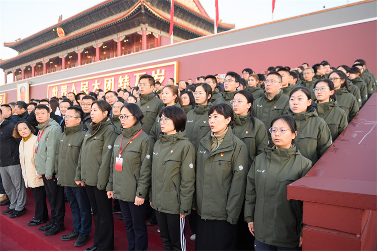 11月1日清晨,南开师生共同登上天安门城楼观礼台,参加庄严的升国旗仪式。