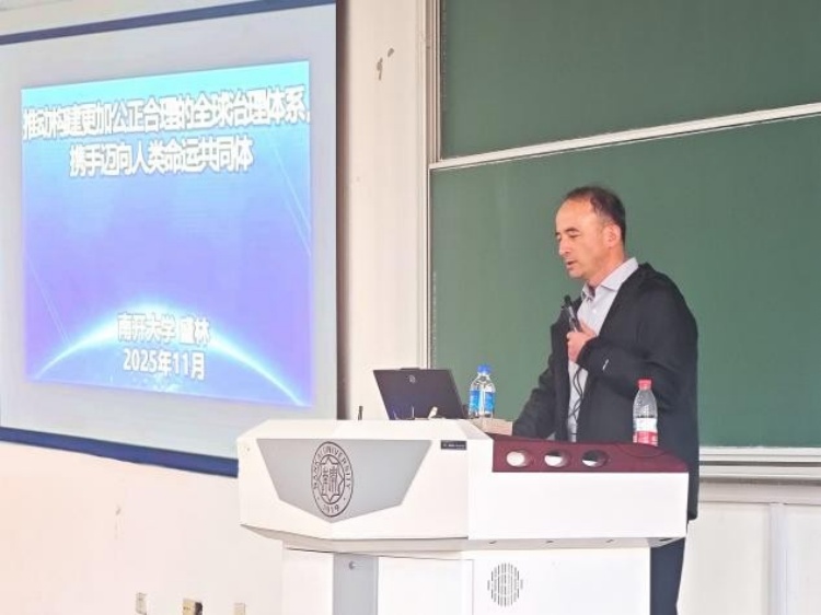11月13日下午,一堂以“推动构建更加公正合理的全球治理体系,携手迈向人类命运共同体”为主题的形势与政策课如期开讲。该讲座由马克思主义学院的盛林教授主讲,紧扣中国人民抗日战争胜利暨世界反法西斯战争胜利80周年的历史坐标,为在场学子层层剖析当下国际格局的演变逻辑、全球治理的共识凝聚与中国特色大国外交的战略方针。