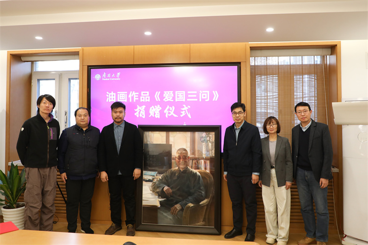 南开新闻网讯(学生记者 袁鹤宁 记者 李享 摄影 韩松城)12月8日,天津画院签约画家崔明非向南开大学捐赠油画《爱国三问》。南开大学党委宣传部、校史研究室代表学校接受捐赠。