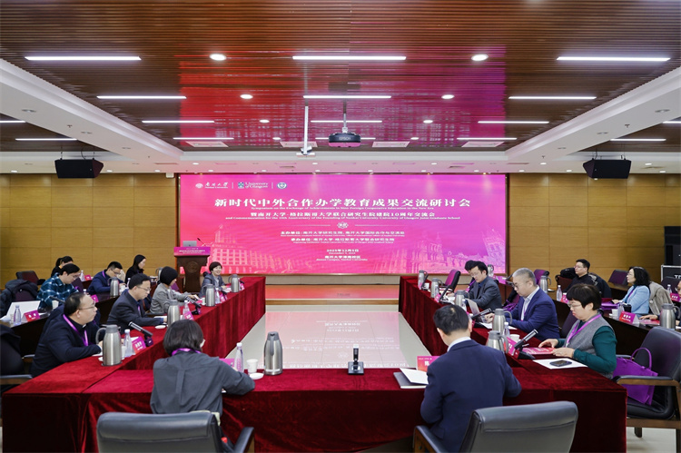 南开新闻网讯(通讯员 王雅迪)12月5日下午,为总结南开大学-格拉斯哥大学联合研究生院建院10周年育人成果、与兄弟高校一起共同探索中外合作办学未来发展路径,研究生院在津南校区综合业务东楼组织召开“新时代中外合作办学教育成果交流研讨会暨南开大学-格拉斯哥大学联合研究生院建院10周年交流会”。南开大学研究生院副院长邵庆辉、南开大学国际合作与交流处处长丁丹,以及来自西北工业大学、东北大学、北京化工大学、南京师范大学、天津城建大学、南开大学与澳大利亚弗林德斯大学合作办学项目、南开大学与哈萨克斯坦欧亚国立大学合作办学项目、南开大学-格拉斯哥大学联合研究生院各专业负责人应邀出席此次交流研讨会。