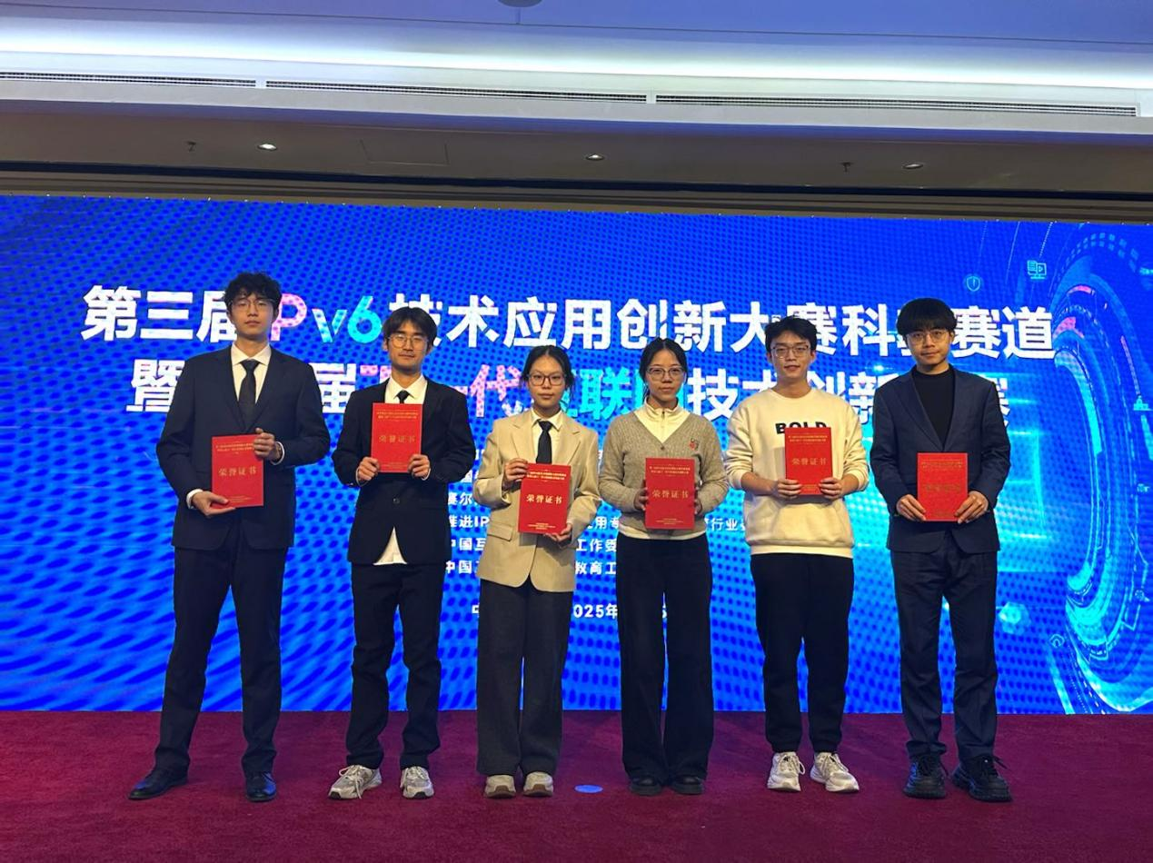 我校学子获奖作品充分展现了他们在下一代互联网核心技术攻关与跨行业应用创新方面的卓越能力。其中,解子萱、李朝阳、谢闻星团队的参赛作品《ObserV6:IPv6网络安全态势感知与漏洞治理可视化平台》(指导老师:李想)荣获一等奖,崔颖欣、范鼎辉、李听泉团队的参赛作品《AmpDetectV6:IPv6下的DDoS攻击安全态势监测与防控平台》(指导老师:李想)也以优异表现荣获二等奖。
