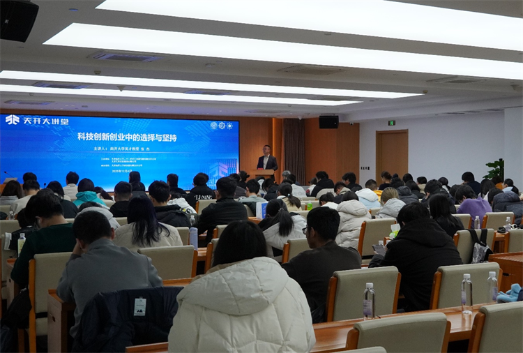 南开新闻网讯(通讯员 付坤 代惠文 摄影 付坤)“不要有偶像包袱”“你不是千手观音”“创业目标越小越聚焦越易落地”,近日,南开大学人工智能学院英才教授张杰在天开大讲堂上,以“科技创新创业中的选择与支持”为题,结合人工智能发展趋势、行业经典案例与自身跨界经历,用硅谷20年经验对“AI创业如何选与干”进行现场破题。