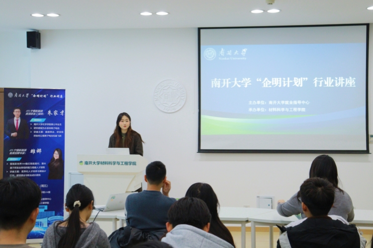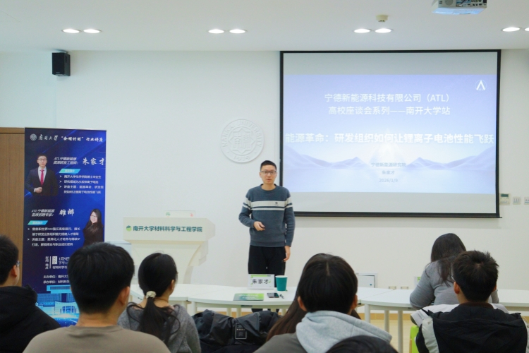 南开新闻网讯(通讯员 杨晓颖 原征蒙)1月9日,由南开大学就业指导中心主办、材料科学与工程学院承办的“企明计划”行业讲座在材料学院育材工作室举办。宁德新能源科技有限公司资深研发工程师朱家才、首席招聘专家雒娜应邀担任主讲,围绕新能源产业发展与职业规划开展主题分享。活动由硕士生先进功能材料党支部书记杜帆主持。