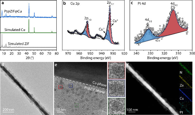 图1:Pt@ZIF@Cu催化剂的结构表征