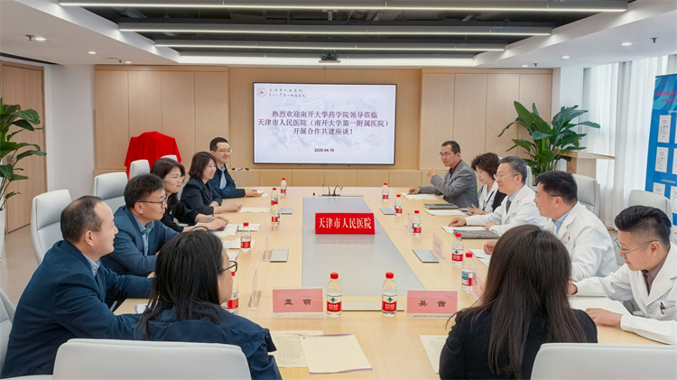 南开新闻网讯(通讯员 胡亚文)为进一步深化校院合作,搭建高水平科研创新与实践育人平台,4月16日,南开大学药学院一行前往南开大学第一附属医院(天津市人民医院)进行座谈交流和科研实践基地共建揭牌。药学院党政主要领导、各学系研究中心负责人及教师代表,第一附属医院院领导及教学处、药学部、战略规划办公室负责人参加了此次活动。