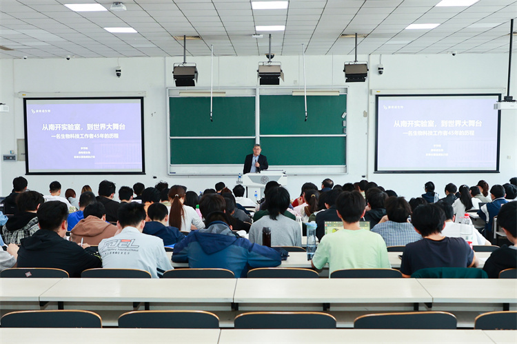 讲座中,宇学峰回溯了自己的学术起点与成长历程。1981年至1988年,他在南开大学先后完成本科与硕士阶段的学习,毕业后留校任教,随后远赴加拿大麦吉尔大学攻读微生物学博士学位。他着重强调,大学期间“踏踏实实的积累”与独立判断力的锻造,既是个人成长的坚实基石,更是走向更广阔专业舞台的重要起点。结合自身海外研发与管理的丰富经历,宇学峰深入剖析了全球疫苗产业的发展格局,他坦言,海外工作期间,自己深刻感受到中国疫苗市场与国际先进水平在研发工艺、生产质量及高端产品供给等方面仍存在差距,而这份真切认知,更坚定了他投身中国创新疫苗事业的决心——以自主创新为核心,推动高质量疫苗研发,为中国乃至全球公共卫生事业贡献力量。