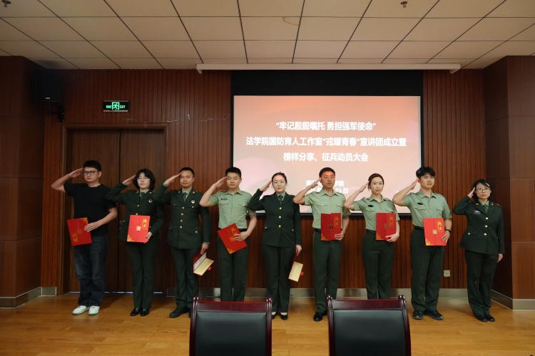 为持续深化国防育人实效,发挥退役大学生士兵示范引领作用,法学院国防育人工作室成立“戎耀青春”宣讲团,并聘任阿斯哈尔・努尔太为工作室的国防教育导师,聘任张炎淼、包宇琳、于成池等退役大学生士兵代表担任宣讲团成员。以榜样力量常态化开展国防教育与征兵宣讲,带动更多青年投身国防事业。