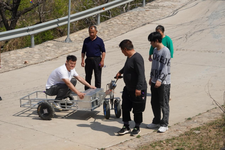 座谈路演结束后,调研团队先后深入下营镇农业示范基地、罗庄子镇杨家峪村、红香酥梨种植基地及科技小院,开展沉浸式调研。在田间地头,调研团队与蓟州区林业局林业工作站高级工程师许连富,罗庄子镇副镇长周淑娟,下营镇桑树庵村党支部书记高天文、段庄村党总支书记段雪林、石炮沟村党支部书记王贺忠,罗庄子镇成人学校校长、乡村工作站地方站长王艳忠,罗庄子镇杨家峪村村委委员张军、杨家峪村原党支部书记耿学文、上白峪村党支部书记郝福利,以及基层农技人员、种植农户面对面交流,实地察看土壤现状、病虫害发生情况、农机作业使用效果,现场试用全地形智能运载装备,全面梳理农业生产中的现实瓶颈,精准捕捉基层技术需求,为后续科技成果落地找准方向。